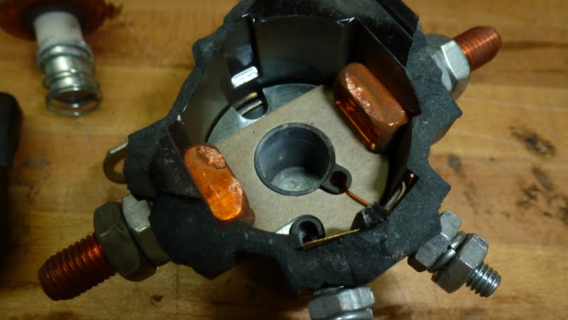 I saved the old solenoid, and will do an autopsy on it when we get back to Houston ? I expect to see burned and pitted contacts providing a high resistance. Pictures when I have them?. In the meantime, if you have a lot of starts on your system, and you are experiencing problems, it might be a good time to suspect the solenoid- they are actually pretty cheap!